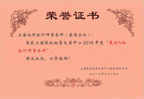 自开盘以来,在社会各界的鼎力支持和热切关注下,经过五年励精图治、奋发图强、锐意创新,逐渐成长为一个规模领先、功能发挥良好的市场。在五年华诞之时,上股交回顾和总结了市场发展情况,表彰了对市场发展做出突出贡献的各方参与者。其间,上海旭升会计师事务所荣膺三项殊荣: