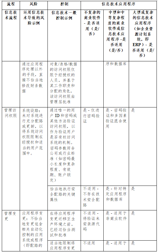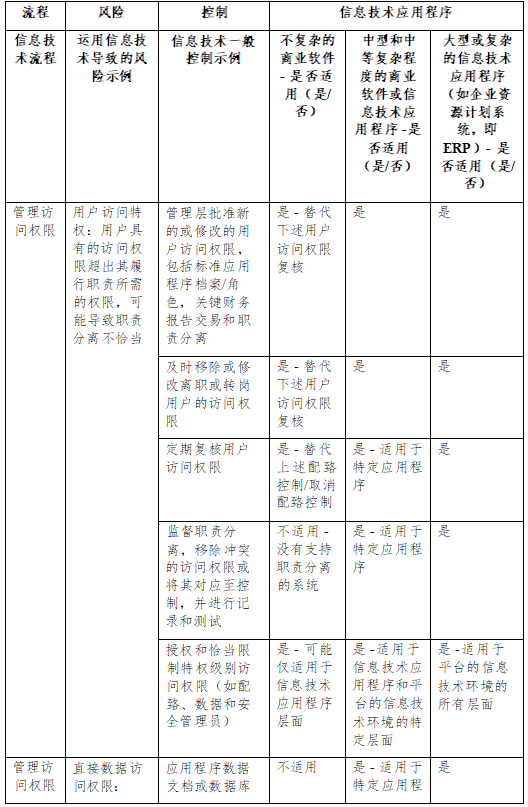 本附录说明了注册会计师在了解信息技术一般控制时可以进一 步考虑的事项。