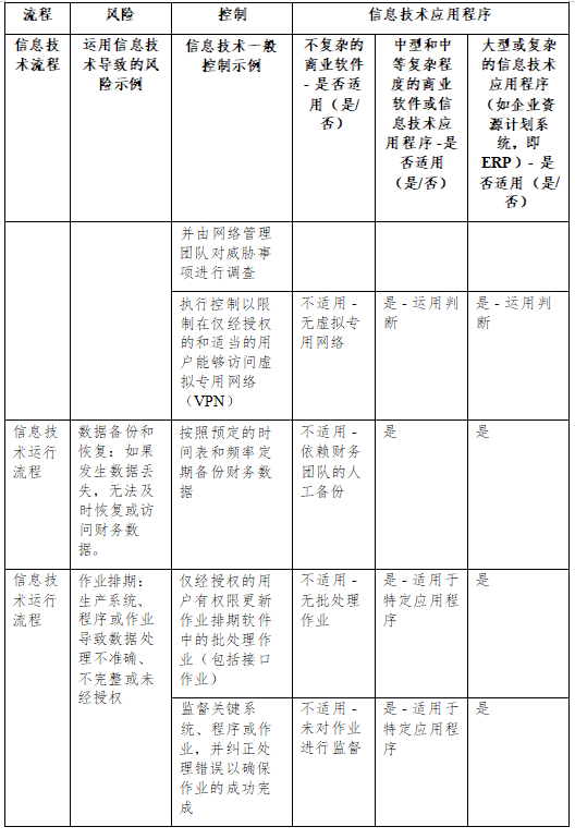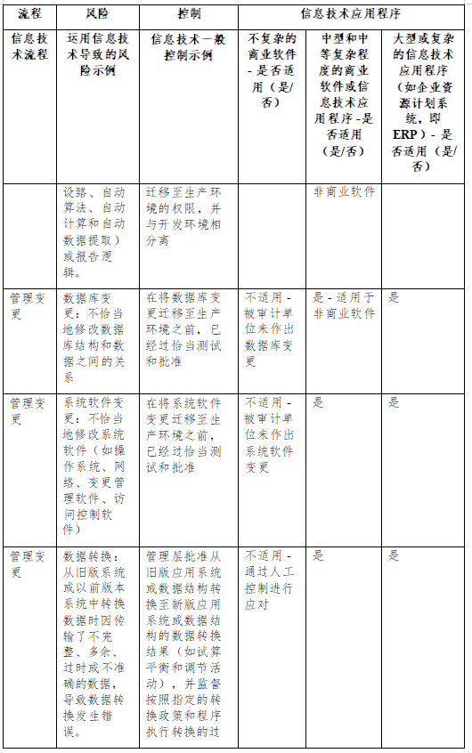 23. 附录 6 进一步说明了针对信息技术环境的不同方面通常实 施的信息技术一般控制的性质。此外,还提供了针对不同信息技术 流程的信息技术一般控制的示例。