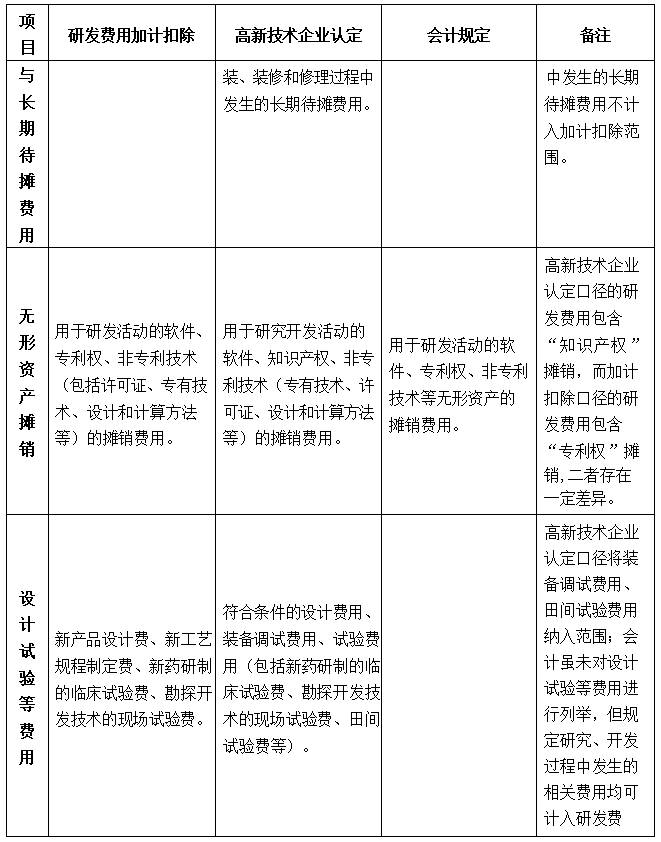 (3 )研发费用范围不同。加计扣除的研发费用范围限于财税〔2015〕 119 号等文件列举的6 项费用及明细项,而据实扣除的研发费用范围按照税 收及财务会计制度的规定确定。