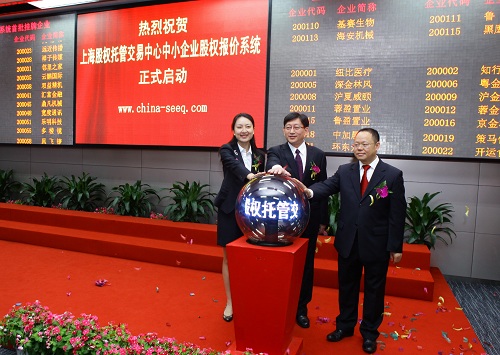 2013年8月7日,上海股权托管交易中心中小企业股权报价系统(www.china-seeq.com)正式启动,首批101家企业成功挂牌,其中,上海企业71家,上海以外地区企业30家。中小企业股权报价系统是上海股交中心打造综合金融服务平台的重要内容,该系统的启动是进一步完善上海股权托管交易中心服务体系、拓宽服务对象范围、满足中小企业多元化需求、拓宽中小企业融资渠道、促进实体经济发展的又一重要举措。